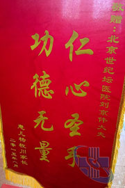 2015年7月,共11面:从左至右依次是:ICU全体医护人员,ICU重症医学科全体医护人员,干三科张振宁、马晓蓉大夫,耳鼻喉科彭洪主任,耳鼻喉科全体医护人员,耳鼻喉头颈外科魏伯俊主任、石增霞护士长及全体医护人员,血管外科全体医护人员,血管外科张福先主任,脊柱外科丁立祥主任、张林及全体医护人员,结核科李燕生主任,消化内科五区刘红主任、宿慧大夫及全体医护人员。